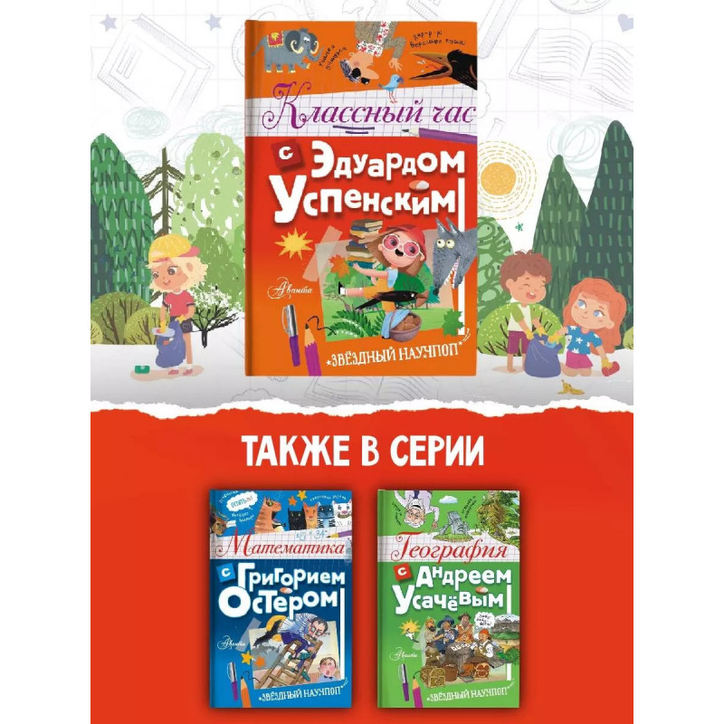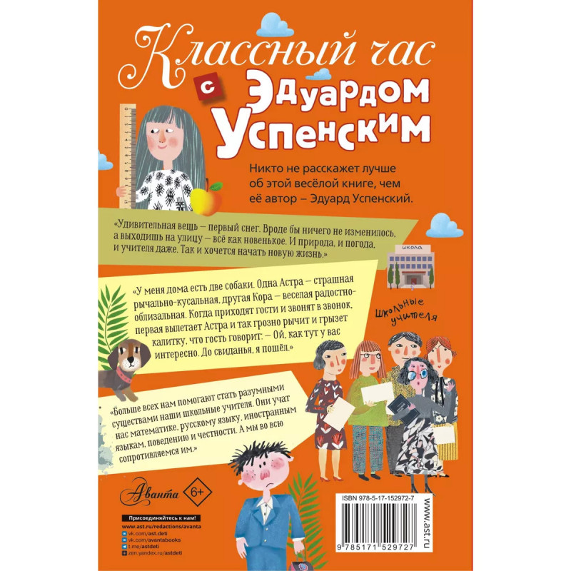 Классный час с Эдуардом Успенским. Книга на целый год для школьников от классика детской литературы. Стопроцентно уверены, что вы с детства знаете этого удивительного писателя - Эдуарда Успенского, по сценариям которого снято столько замечательных мультфильмов. И конечно же, читали его книги про Простоквашино, крокодила Гену и Чебурашку, девочку Веру и обезьянку Анфису Эта книга совсем другая: она проведет вас через весь год, заставит поработать мозгами, задуматься над своим поведением, разглядеть свои недостатки и достоинства, исправить пл.оxие оценки (если они, конечно, у вас есть), и рассмешит, поднимет настроение в круговерти школьных будней, заставит улыбнуться даже самых серьёзных Согласитесь, провести год с классиком всегда полезно! Равняемся на классика: подтягиваем учёбу, учимся думать и действовать!
