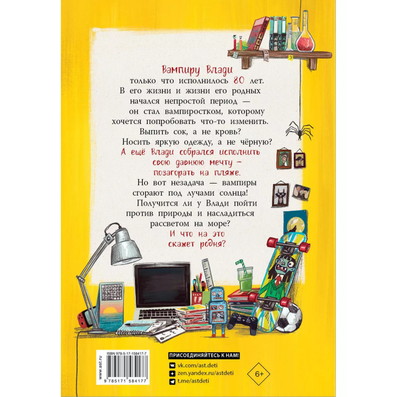 Операция "Рассвет на пляже". Вампиру Влади только что исполнилось 8 лет. В его жизни и жизни его родных начался непростой период - он стал вампиростком, которому хочется попробовать что-то изменить. Выпить сок, а не кровь? Носить яркую одежду, а не чёрную? А ещё Влади собрался исполнить свою давнюю мечту - позагорать на пляже. Но вот незадача - вампиры сгорают под лучами солнца! Получится ли у Влади пойти против природы и насладиться рассветом на море? И что на это скажет родня?