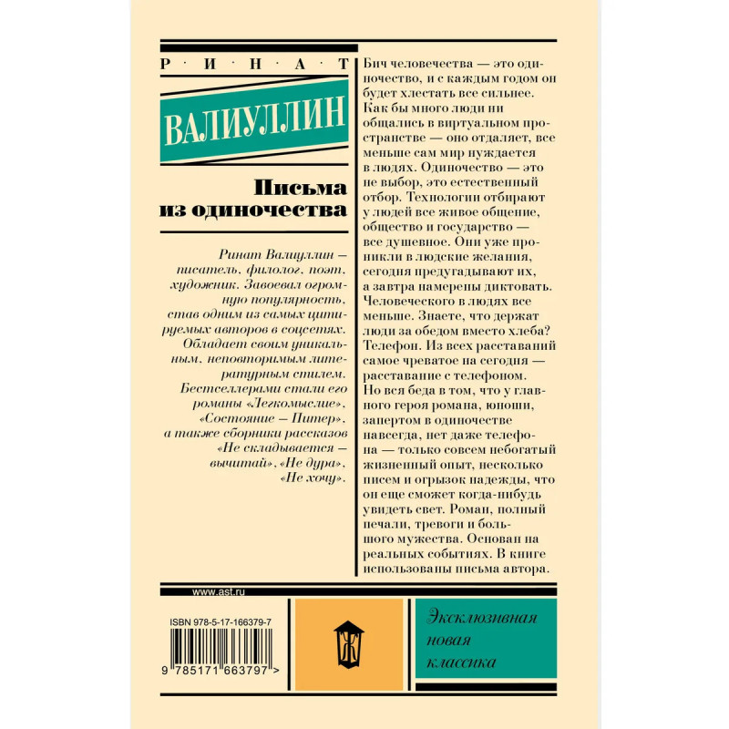 - Бестселлер Рината Валиуллина в культовой серии Эксклюзивная новая классика! - От российского мастера любовной прозы с броским и невероятно остроумным авторским стилем, суперспособностью подмечать волшебное в повседневном, литературного алхимика и любимца Сети, романы которого разобраны на цитаты. - Общий тираж книг Рината Валиуллина более 350 тыс экземпляров. - Для поклонников романов Где валяются поцелуи, Состояние Питер, В каждом молчании своя истерика, Легкомыслие и других. - Серия Эксклюзивная новая классика лучшие произведения российских писателей, составившие новый золотой фонд отечественной литературы.