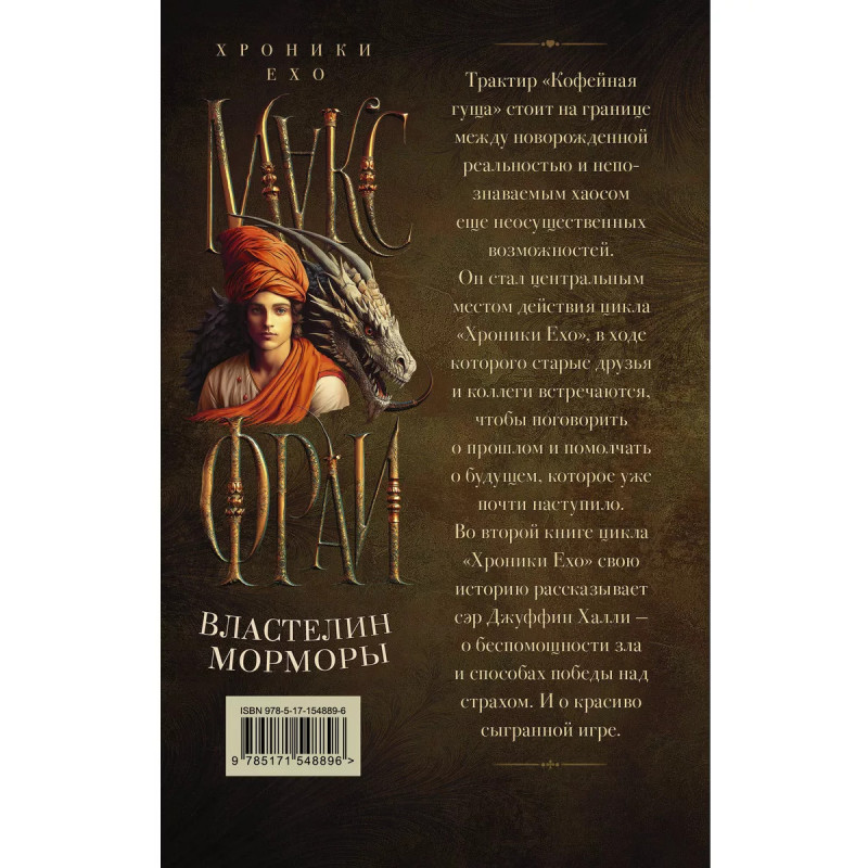 Властелин Морморы. Трактир "Кофейная гуща" стоит на границе между новорожденной реальностью и непознаваемым хаосом еще неосущественных возможностей. Он стал центральным местом действия цикла "Хроники Ехо", в ходе которого старые друзья и коллеги встречаются, чтобы поговорить о прошлом и помолчать о будущем, которое уже почти наступило. Во второй книге цикла "Хроники Ехо" свою историю рассказывает сэр Джуффин Халли - о беспомощности зла и способах победы над страхом. И о красиво сыгранной игре.