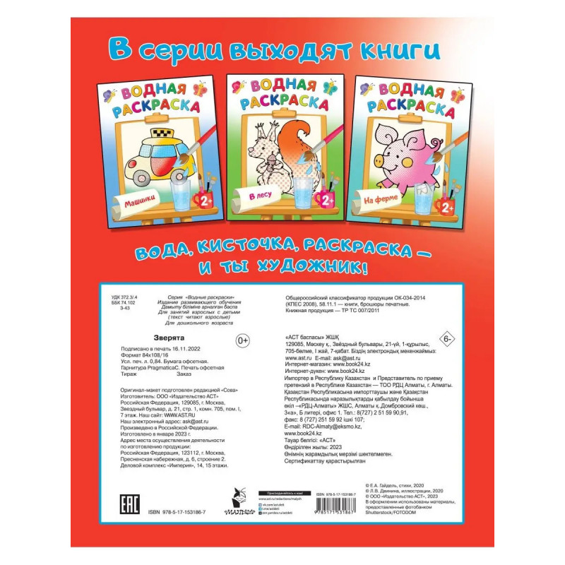 Водная раскраска это простая техника для решения сложных задач: ребёнок учится концентрировать внимание, получает представление о форме и цвете, тренирует мелкую моторику и, конечно, радуется, глядя на свой рисунок. Картинка не может не получиться! Авторские иллюстрации. Обучающие вопросы. Качественная бумага. Удобный для ребёнка размер книги.