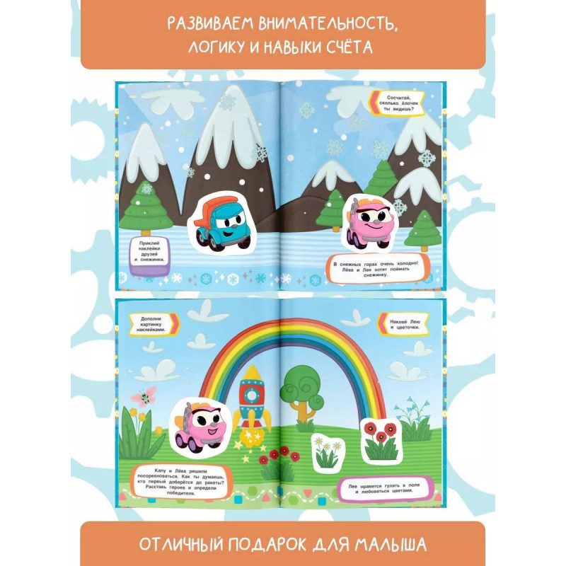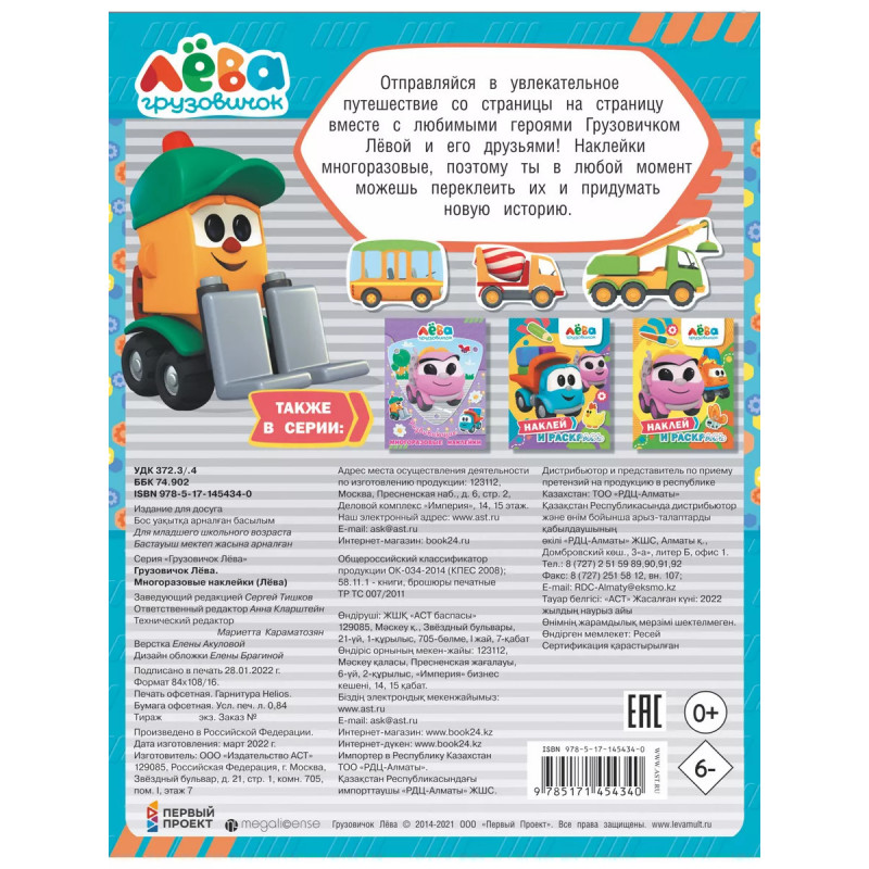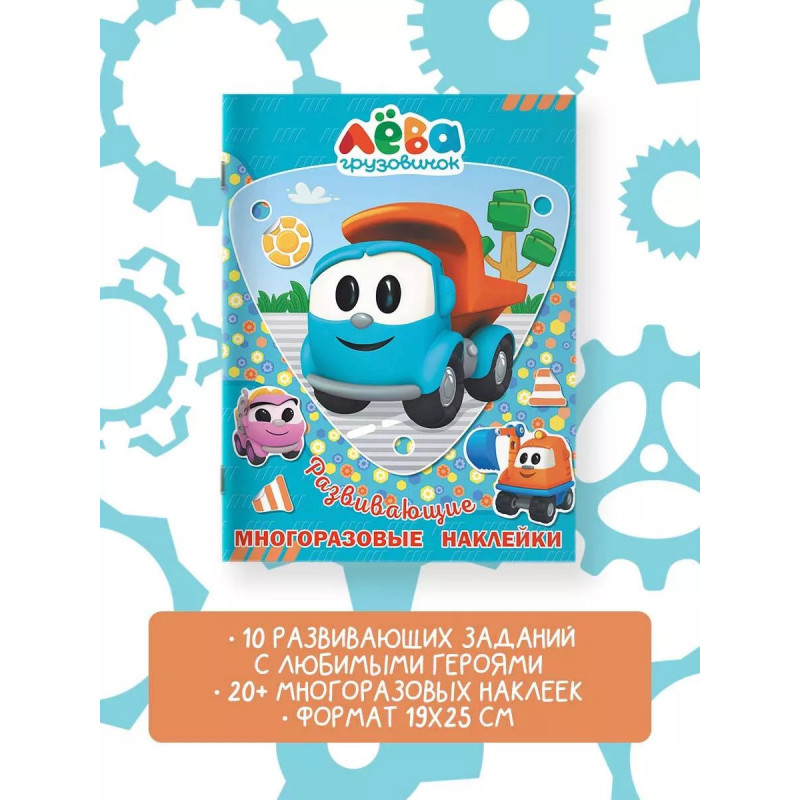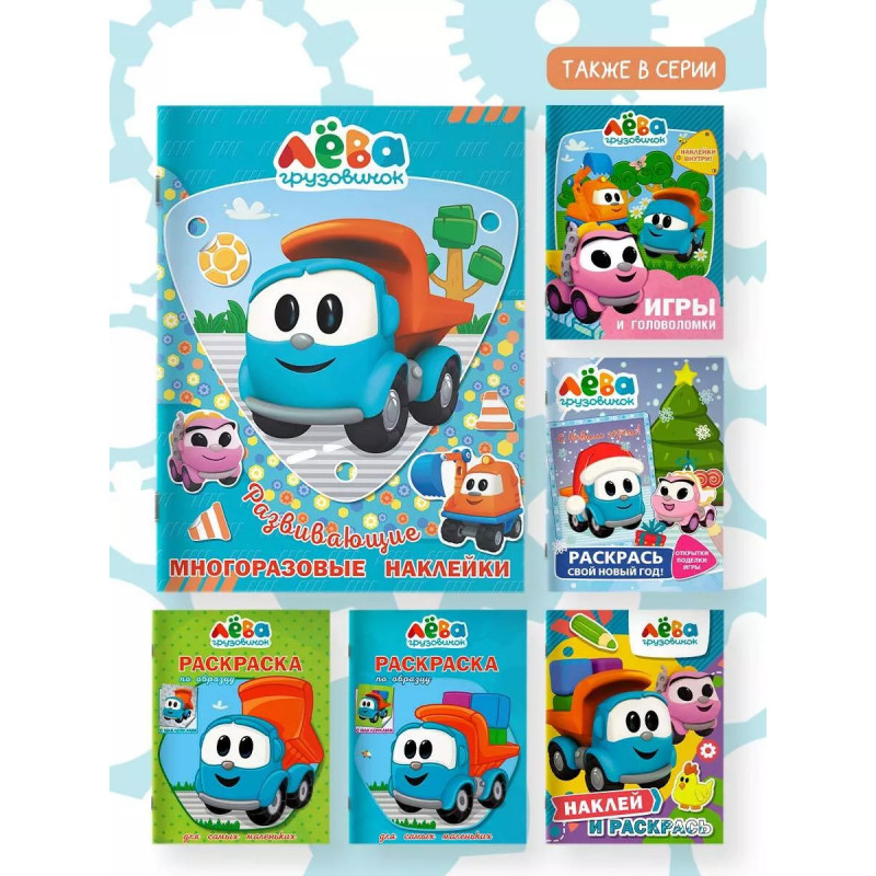 Отправляйся в увлекательное путешествие со страницы на страницу вместе с любимыми героями Грузовичком Лёвой и его друзьями! Наклейки многоразовые, поэтому ты в любой момент можешь переклеить их и придумать новую историю.