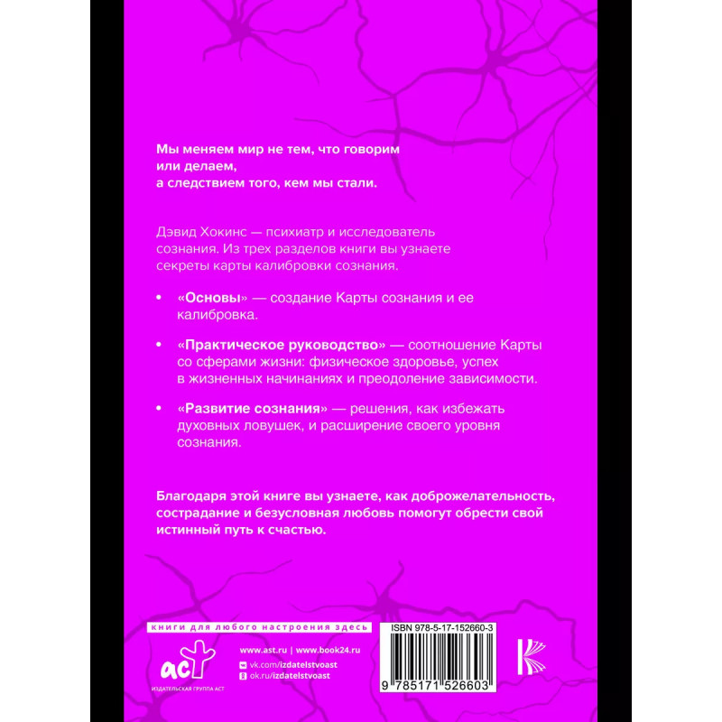 Дэвид Хокинс - психиатр и исследователь сознания. Из трех разделов книги вы узнаете секреты карты калибровки сознания.