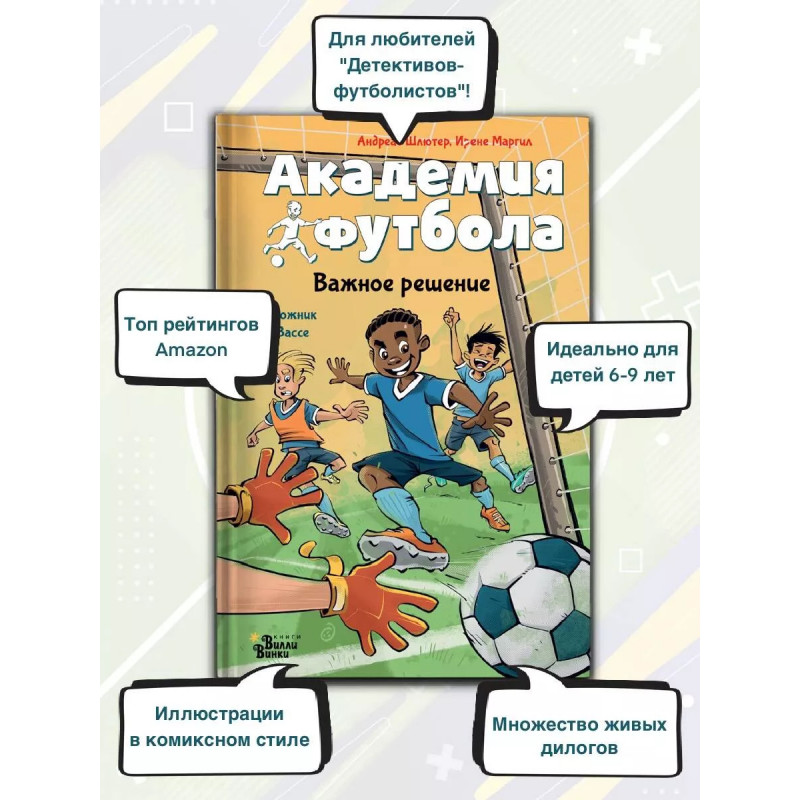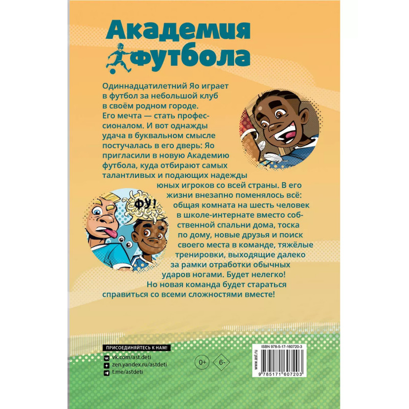 Академия футбола. Важное решение. Одиннадцатилетний Яо играет в футбол за небольшой клуб в своём родном городе. Его мечта - стать профессионалом. И вот однажды удача в буквальном смысле постучалась в его дверь: Яо пригласили в новую Академию футбола, куда отбирают самых талантливых и подающих надежду юных игроков со всей страны! В его жизни внезапно поменялось всё: общая комната на шесть человек в школе-интернате вместо собственной спальни дома, тоска по дому, новые друзья и поиск своего места в команде, тяжёлые тренировки, выходящие далеко за рамки отработки обычных ударов ногами. Будет нелегко! Но новая команда будет стараться справиться со всеми сложностями вместе! Идеальное чтение для всех юных любителей футбола, рассказывающее о школьных буднях в настоящей футбольной академии, дружбе, справедливости и командном духе, со множеством цветных иллюстраций в комиксном стиле.
