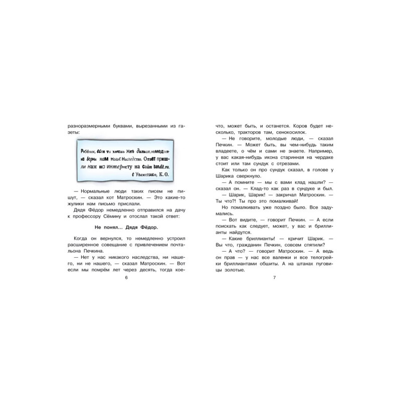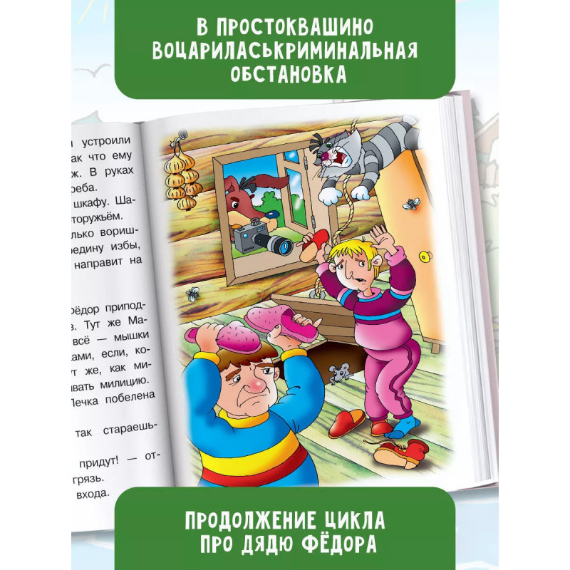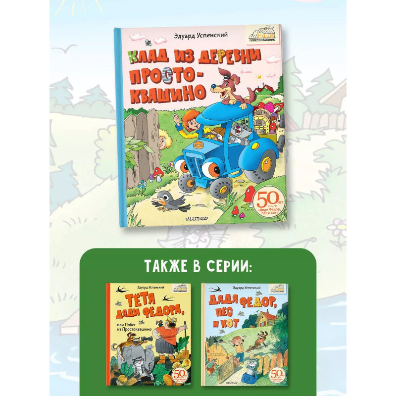 Сказочная повесть "Клад из деревни Простоквашино" продолжает цикл историй про дядю Фёдора, Шарика и Матроскина (а также почтальона Печкина). Когда-то наши герои нашли в лесу клад целый сундук с драгоценностями. На часть этого клада купили корову Мурку, тр-тр Митю и фоторужьё для Шарика. А про сундук совсем забыли. Но кто-то, кто считает сокровища своим личным имуществом, решил восстановить справедливость и клад заполучить. В Простоквашино воцарилась криминальная обстановка. Для младшего школьного возраста