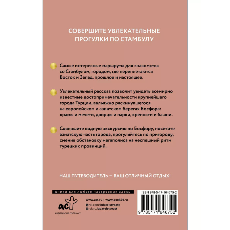 На страницах этой книги вы найдете описание интереснейших маршрутов по Стамбулу. Крупнейшему городу Турции, раскинувшемуся на европейском и азиатском берегах пролива Босфор. Этот путеводитель поможет вам поддержать разговор с многоликим мегаполисом и покажет самые интересные, а иногда и неожиданные его грани. В путеводителе вы найдете и несколько маршрутов по пригородам, которые позволят вам сменить обстановку мегаполиса на неспешный ритм турецких провинций. Чтобы экскурсии без гида были познавательными, в статьях приводятся исторические данные, содержатся практические советы, красочные фотографии дают представление о местности. Для ориентирования даны схемы маршрутов. Цифрами на схемах и в тексте обозначены ключевые точки маршрутов.