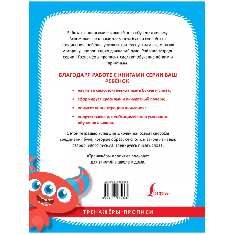 Хотите помочь ребёнку научиться писать разборчиво и красиво? Лучший способ регулярная практика письма. С этим тренажёром младшие школьники освоят способы соединения букв, которые образуют слоги, и закрепят навык разборчивого письма, тренируясь писать слова. Прописи соответствуют требованиям ФГОС (Федерального государственного образовательного стандарта) и подходят к любым учебникам русского языка. Издание удобного формата предназначено для учащихся начальной школы, их родителей и учителей.