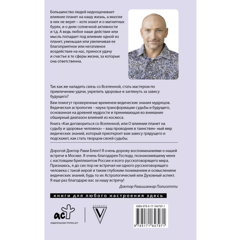 Большинство людей недооценивает влияние планет на нашу жизнь, а многие в них не верят хотя знают и о магнитных бурях, и о днях солнечной активности и т.д. А ведь любое наше действие или мысль попадает под влияние одной из планет, уменьшая или увеличивая ее благоприятное или негативное воздействие на нас, принося удачу исчастье в те сферы жизни, за которые она ответственна. Так как же наладить связь со Вселенной, стать мастером по привлечению удачи, укрепить здоровье и заглянуть за завесу будущего? Вам помогут проверенные временем ведические знания мудрецов. Ведическая астрология наука трансформации судьбы и будущего, основанная на древней мудрости и принимающая во внимание обширный диапазон влияний из космоса. Книга "Как договориться со Вселенной, или О влиянии планет на судьбу и здоровье человека" ваш проводник в таинственный мир ведических знаний, который приоткроет вам завесу грядущего и подскажет, как стать творцом своей судьбы.