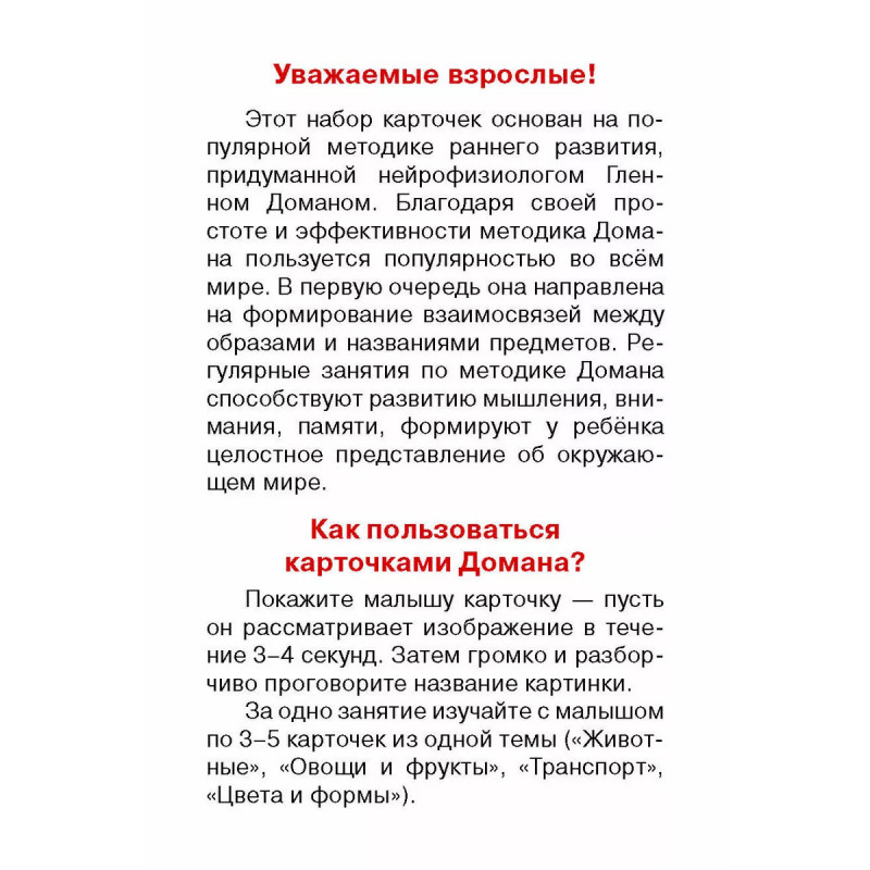 Характеристики Развивающие карточки Домана. 0-3 лет.