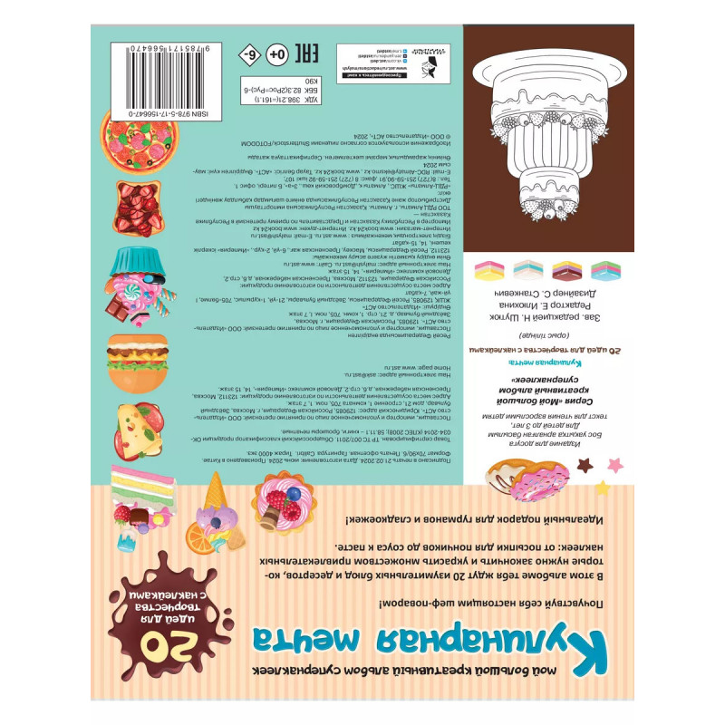Почувствуй себя настоящим шеф-поваром! В этом альбоме тебя ждут 20 изумительных блюд и десертов, которые нужно закончить и украсить множеством привлекательных наклеек: от посыпки для пончиков до соуса к пасте. Идеальный подарок для гурманов и сладкоежек!