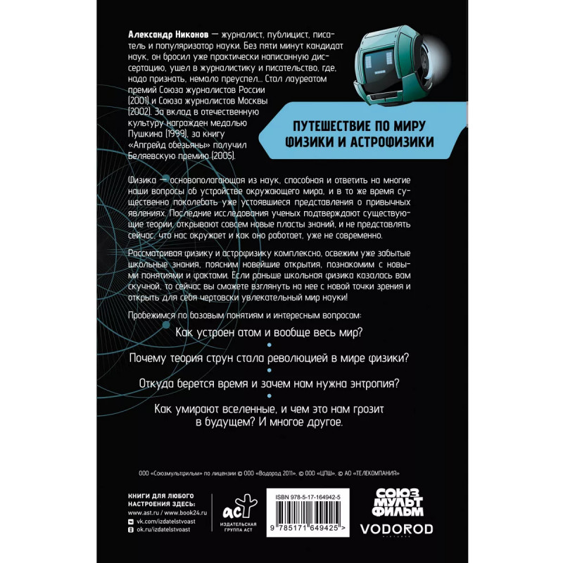 Физика основополагающая из наук, способная и ответить на многие наши вопросы об устройстве окружающего мира, и в то же время существенно поколебать уже устоявшиеся представления о привычных явлениях. Последние исследования ученых подтверждают существующие теории, открывают совсем новые пласты знаний и не представлять сейчас, что нас окружает и как оно работает, уже не современно. Александр Никонов в своей книге рассматривает физику и астрофизику комплексно, освежая уже забытые школьные знания, поясняя новейшие открытия и уточнения ранее известных физических законов, знакомя нас с новыми понятиями и фактами. Если раньше школьная физика казалась вам скучной, то сейчас вы сможете взглянуть на нее с новой точки зрения и открыть для себя чертовски увлекательный мир науки!