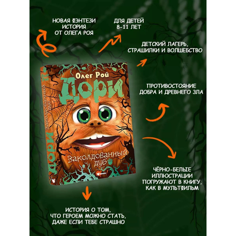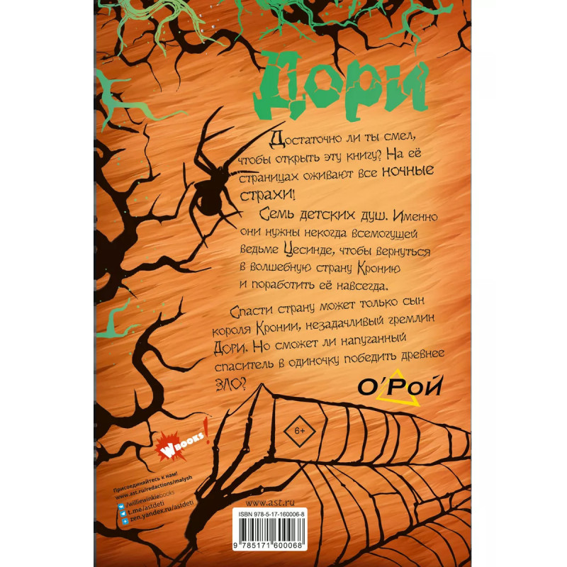 Дори. Заколдованный дуб. Достаточно ли ты смел, чтобы открыть эту книгу? На её страницах оживают все ночные страхи! Семь детских душ. Именно они нужны некогда всемогущей ведьме Цесинде, чтобы вернуться в волшебную страну Кронию и поработить её навсегда. Спасти страну может только сын короля Кронии, незадачливый гремлин ДОРИ. Но сможет ли напуганный спаситель в одиночку победить древнее ЗЛО?