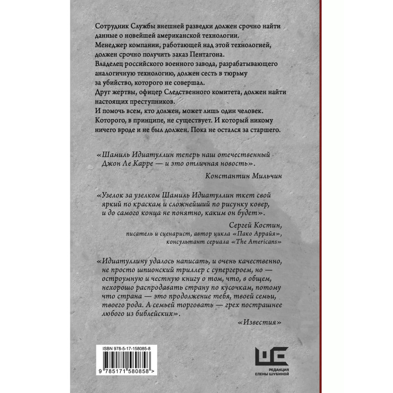 За старшего. Лихо закрученный шпионский триллер, история-головоломка дважды лауреата премии "Большая книга". Энергичный и сложноустроенный социально-криминальный роман о семейных ценностях. Долгожданное новое издание: продолжение серии "РЕШ: страшно интересно".