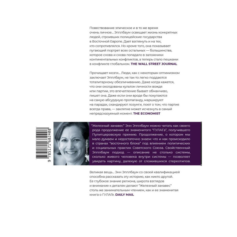 Известная американская журналистка и политический аналитик Энн Эпплбаум исследует образование и начало эволюции коммунистических режимов в странах Восточной Европы после Второй мировой войны. Анализ событий главным образом в освобожденных Красной армией Венгрии, Восточной Германии и Польше сопровождается материалами многочисленных архивов и свидетельствами очевидцев. Эпплбаум тщательно реконструирует различные аспекты социально-политических и экономических процессов в странах соцлагеря, показывает, как функционировали механизмы пропаганды и политического контроля, раскрывает роль спецслужб в подавлении оппозиции и общественных движений. И наглядно демонстрирует, как и почему распад восточного блока стал неизбежным, когда возник разлом в ключевой его опоре Советском Союзе и пал железный занавес.