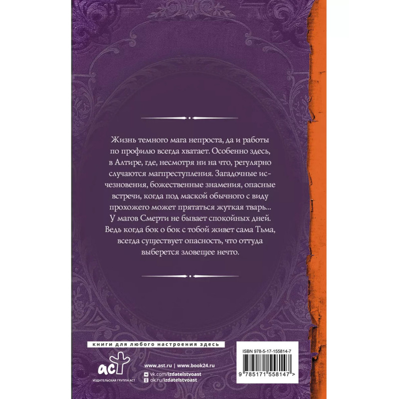 Жизнь темного мага непроста, да и работы по профилю всегда хватает. Особенно здесь, в Алтире, где, несмотря ни на что, регулярно случаются магпреступления. Загадочные исчезновения, божественные знамения, опасные встречи, когда под маской обычного с виду прохожего может прятаться жуткая тварь У магов Смерти не бывает спокойных дней. Ведь когда бок о бок с тобой живет сама Тьма, всегда существует опасность, что оттуда выберется зловещее нечто.