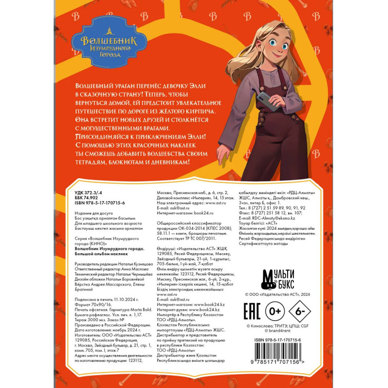 Характеристики Волшебник Изумрудного города. Большой альбом наклеек.