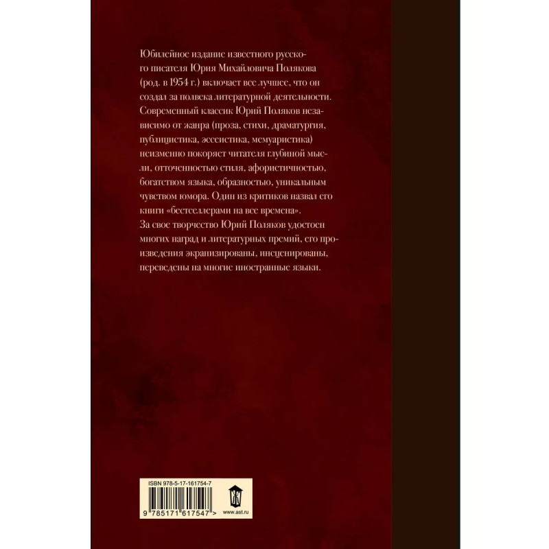 В первый том собрания сочинений включены те самые знаменитые повести, с которыми Юрий Поляков вошел в отечественную словесность в середине 1980-х, став одним из самых ярких художественных явлений последних лет существования Советского Союза. Сегодня эта, некогда полузапретная, проза нисколько не устарела, наоборот, словно выдержанное вино приобрела особую ценность. Написанная рукой мастера, она читается с неослабным интересом и позволяет лучше осознать прошлое, без которого сегодняшний день непостижим. Хотите понять, почему рухнул СССР? Читайте Полякова. Хотите понять, почему СССР можно было сохранить? Читайте Полякова