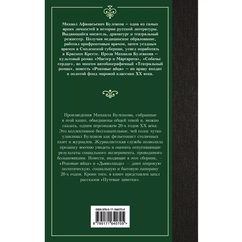 От автора бессмертных произведений Мастер и Маргарита и Собачье сердце. В это издание вошли повести Роковые яйца и Дьяволиада, а также сборник рассказов Путевые заметки. Панорама советской жизни двадцатых годов прошлого века.
