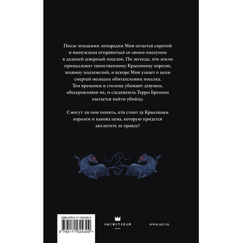 Темное фэнтези, в котором переосмысливается легенда о таинственном Крысином короле, от популярного в Сети автора. Детективно-приключенческий роман с готическими вайбами, старой тайной и серией кровавых убийств. В этой книге читателей ждет борьба за власть, политические интриги, мстительный дух убитого правителя и загадочные личности, чьи мотивы не до конца понятны.