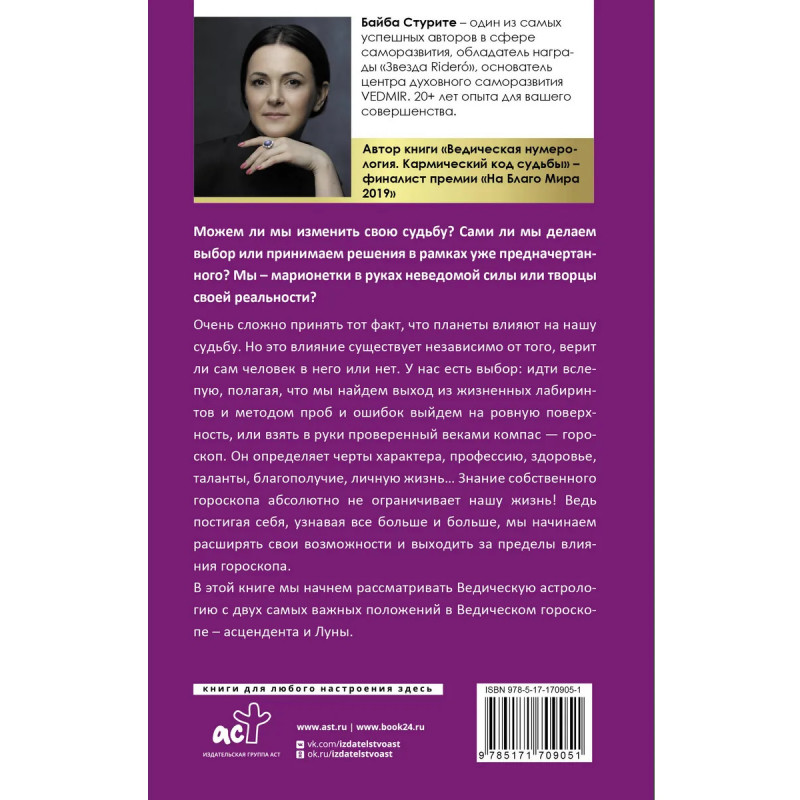 Можем ли мы изменить свою судьбу? Сами ли мы делаем выбор или принимаем решения в рамках уже предначертанного? Мы марионетки в руках неведомой силы или творцы своей реальности? Очень сложно принять тот факт, что планеты влияют на нашу судьбу. Но это влияние существует независимо от того, верит ли сам человек в него или нет. У нас есть выбор: идти вслепую, полагая, что мы найдем выход из жизненных лабиринтов и методом проб и ошибок выйдем на ровную поверхность, или взять в руки проверенный веками компас гороскоп. Он определяет черты характера, профессию, здоровье, таланты, благополучие, личную жизнь Знание собственного гороскопа абсолютно не ограничивает нашу жизнь! Ведь постигая себя, узнавая все больше и больше, мы начинаем расширять свои возможности и выходить за пределы влияния гороскопа. В этой книге мы начнем рассматривать Ведическую астрологию с двух самых важных положений в Ведическом гороскопе асцендента и Луны.