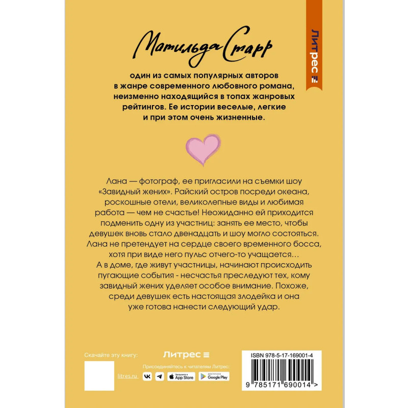 - Ромком, заряжающий хорошим настроением и верой в лучшее. - История о девушке-фотографе, поневоле ставшей участницей конкурса, в котором идет борьба за сердце миллионера. - Атмосфера отпуска и поиска приключений на тропическом острове. - Закрученная детективная линия интересно будет до конца. - Серия Секрет моего счастья теплые истории для тех, кто устал от культа достигаторства и не желает следовать чужим идеалам.