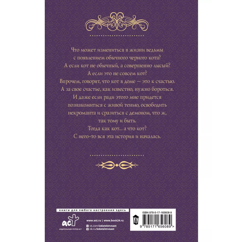 Что может измениться в жизни ведьмы с появлением обычного черного кота? А если кот не обычный, а совершенно лысый? А если это не совсем кот? Впрочем, говорят, что кот в доме это к счастью. А за свое счастье, как известно, нужно бороться. И даже если ради этого мне придется познакомиться с живой тенью, освободить некроманта и сразиться с демоном, что ж, так тому и быть. Тогда как кот а что кот? С него-то вся эта история и началась.