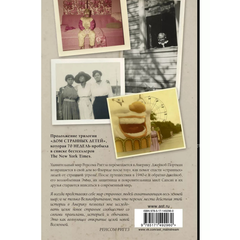 Карта дней. Четвертая книга из серии "Дом мисс Сапсан для странных детей". Серия-бестселлер №1 по спискам "Нью-Йорк Таймс". Прекрасный новый мир! Новые невообразимые опасности! Приключения только начинаются! "Напряженная, трогательная и чарующе странная Фотографии в сочетании с текстом создают великолепную, незабываемую историю". - Джон Грин, автор книг "Черепахи - и нет им конца" и "Виноваты звезды", о серии "Дом мисс Сапсан для странных детей". Об авторе Рэнсом Риггз - автор серии романов "Дом мисс Сапсан для странных детей", занимающей первое место в списках серий-бестселлеров "Нью-Йорк Таймс". Риггз родился на ферме в Мэриленде и вырос на юге Флориды. Он изучал литературу в Кэньон-колледже и закончил кинематографический факультет Университета Южной Калифорнии. Сейчас он живет в Лос-Анджелесе со своей женой Тахирой Мафи, которая тоже пишет книги-бестселлеры.