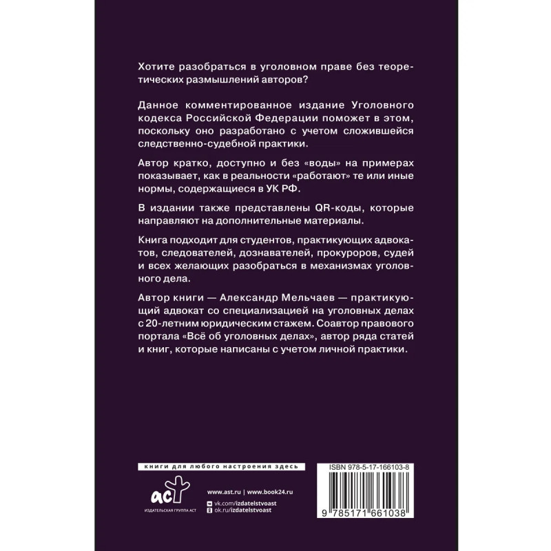 Хотите разобраться в уголовном праве без теоретических размышлений авторов? Данное комментированное издание Уголовного кодекса Российской Федерации поможет в этом, поскольку оно разработано с учетом сложившейся следственно-судебной практики. Автор кратко, доступно и без "воды" на примерах показывает, как в реальности "работают" те или иные нормы, содержащиеся в УК РФ. В издании также представлены QR-коды, которые направляют на дополнительные материалы. Книга подходит для студентов, практикующих адвокатов, следователей, дознавателей, прокуроров, судей и всех желающих разобраться в механизмах уголовного дела. В тексте кодекса учтены все изменения, опубликованные в официальных источниках на момент подписания издания в печать.