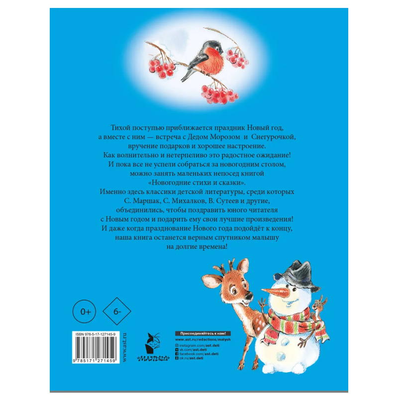 В книгу "Новогодние стихи и сказки" вошли произведения, которые отлично подойдут для маленького и требовательного читателя, потому что все сказки и стихи написали лучшие писатели отечественной детской литературы: Э. Успенский, С. Маршак, С. Михалков, В. Сутеев, С. Козлов, Е. Карганова, Р. Кудашева и другие. За зимними мотивами произведений скрывается не только праздничное настроение, но и добрые и простые сюжеты с большими и яркими картинками, которые будет интересно рассматривать даже самому непоседливому малышу. Иллюстрации нарисовали художники Э. Булатов и О. Васильев, С. Бордюг и Н. Трепенок, С. Емельянова, А. Ипатова и другие. Для детей до 3-х лет.