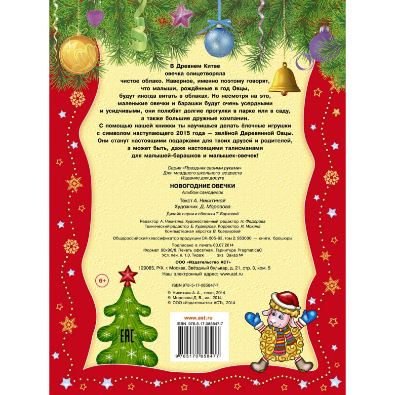 Хочешь, подарить что-то необычное своим родным и друзьям на новый год? Или украсить дом к приходу Деда Мороза так, чтобы он ахнул от восторга и подарил тебе много-много подарков? Открывай нашу книжку и сделай самостоятельно ёлочные игрушки, гирлянды и открытки, на которых будут смешные овечки. А потом устрой новогодний маскарад в книжке ты найдешь две маски! Весёлого Нового года!