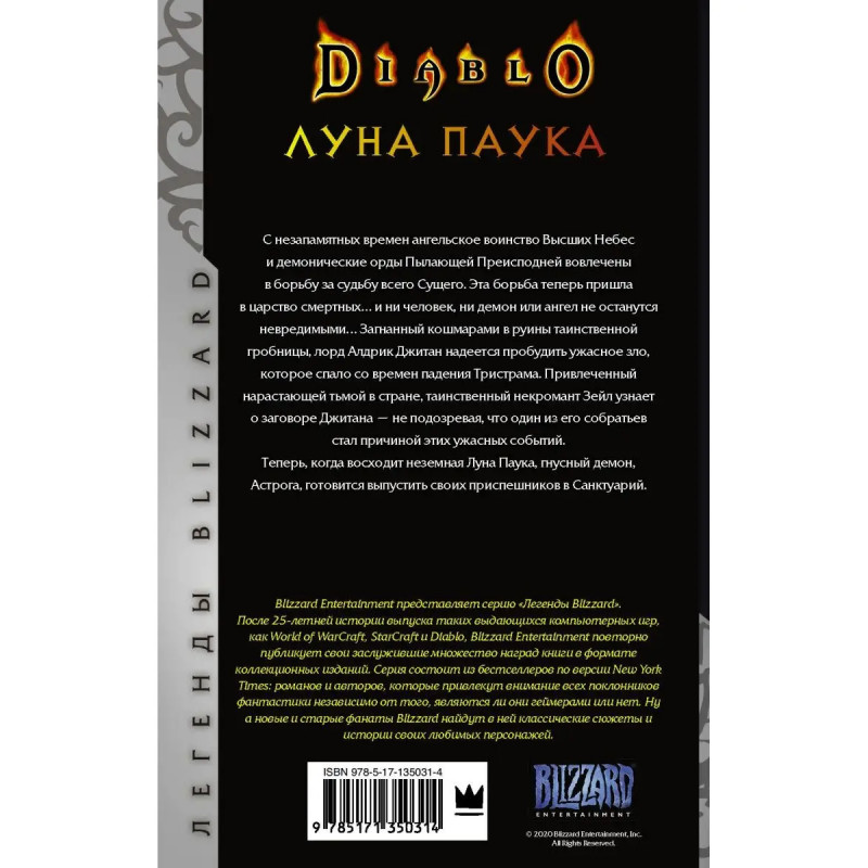 C незапамятных времён ангельское воинство Высших Небес и демонические орды Пылающей Преисподней были вовлечены в борьбу за судьбу всего Сущего. Эта борьба теперь пришла в царство смертных... и ни человек, ни демон или ангел не останутся невредимыми... Загнанный кошмарами в руины таинственной гробницы, лорд Алдрик Джитан надеется пробудить ужасное зло, которое спало со времён падения Тристрама. Привлечённый нарастающей тьмой в стране, таинственный некромант Зейл натыкается на заговор Джитана не подозревая, что один из его собратьев стал причиной этих ужасных событий. Теперь, когда восходит неземная Луна Паука, гнусный демон, Астрога, готовится выпустить своих приспешников в Санктуарий.