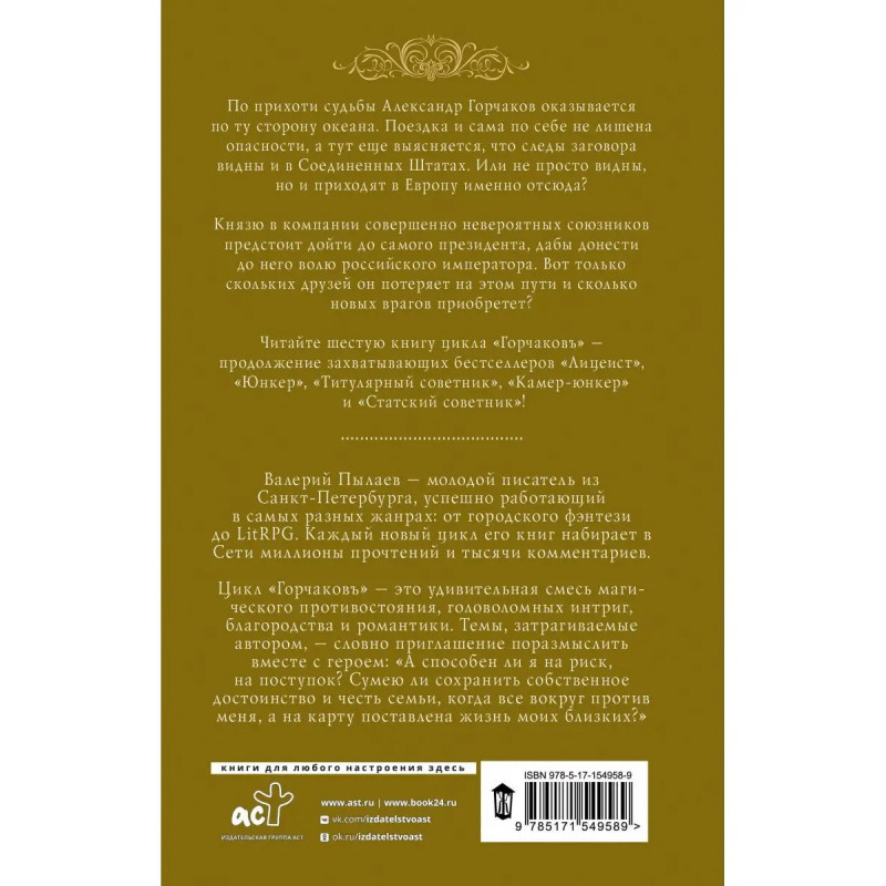 Шестая часть авантюрно-приключенческой саги Горчаковъ. Каждый новый цикл Валерия Пылаева набирает в Сети миллионы прочтений и тысячи комментариев! В марте 223 года авторский цикл Валерия Пылаева Горчаковъ попал в шорт-лист литературной премии Пересвет, присуждаемой фантастическим произведениям патриотической направленности. В апреле 223 первый роман цикла вошел в шорт-лист премии РосКон-223. Цикл Горчаковъ это удивительная смесь магического противостояния, головоломных интриг, благородства и романтики. Темы, затрагиваемые автором: долг, честь, семья, любовь, предательства, настоящая мужская дружба и умение принять ответственность, несмотря на опасность.