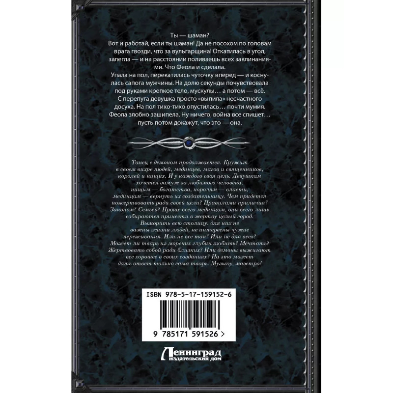 Танго с демоном. Танго верано. Танец с демоном продолжается. Кружит в своем вихре людей, мединцев, магов и священников, королей и нищих. И у каждого своя цель. Девушкам хочется замуж за любимого человека, нищим - богатства, королям - власти, мединцам - вернуть их создательницу. Чем придется пожертвовать ради своей цели? Правилами приличия? Законом? Семьей? Проще всего мединцам, они всего лишь собираются принести в жертву целый город. Выморить всю столицу. для них не важны жизни людей, не интересны чужие переживания.Или не все так? Или не для всех? Может ли тварь из морских глубин любить? Мечтать? Жертвовать собой ради близких? Или демоны выжигают все хорошее в своих созданиях? На это может дать ответ только сама тварь. Музыку, маэстро!