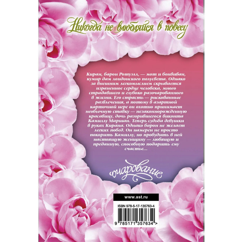 Киран, барон Ротуэлл, — мот и бонвиван, кумир дам лондонского полусвета. Однако за внешним легкомыслием скрывается израненное сердце человека, много страдавшего и глубоко разочарованного в жизни. Его страсть — рискованные развлечения, а потому в азартной карточной игре он охотно принимает необычную ставку — незаконнорожденную красавицу, дочь разорившегося виконта Камиллу Маршан.Теперь судьба девушки в руках Кирана. Однако барон не желает легких побед. Он намерен не просто покорить Камиллу, но пробудить в ней настоящую женщину — любящую и преданную, способную подарить ему счастье…