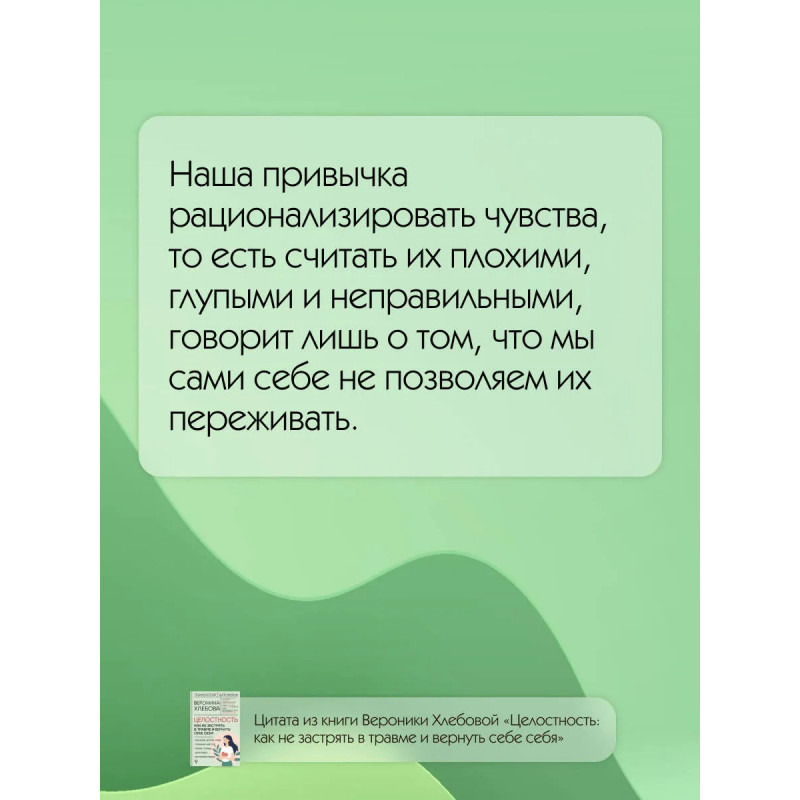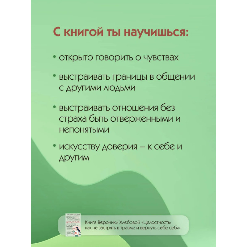 Почему нам так страшно быть самими собой? Если в отношениях с другими людьми страхи и тревога ваши постоянные спутники, задумайтесь: чувствует ли себя в безопасности ваш Внутренний Ребенок? Эта книга поможет вам перестать сомневаться в себе, прятаться за масками и играть роли, которые вы не хотите играть. Она научит вас уважать и принимать всё, что есть внутри вас. Она подскажет, как отпустить детские чаяния, страхи и паттерны поведения, которые перенесены во взрослую жизнь из общения с самими близкими, родителями. Психолог и автор бестселлеров о сепарации Вероника Хлебова чутко и профессионально поможет вам пройти путь исцеления от травмы недоверия. Вы сможете встать в позицию Наблюдателя и увидеть себя со стороны; найти выход из негативных сценариев; побыть наедине со своими эмоциями и лучше узнать их; сказать себе: Я заслуживаю любви и заботы, я есть у себя, и я со всем справлюсь!