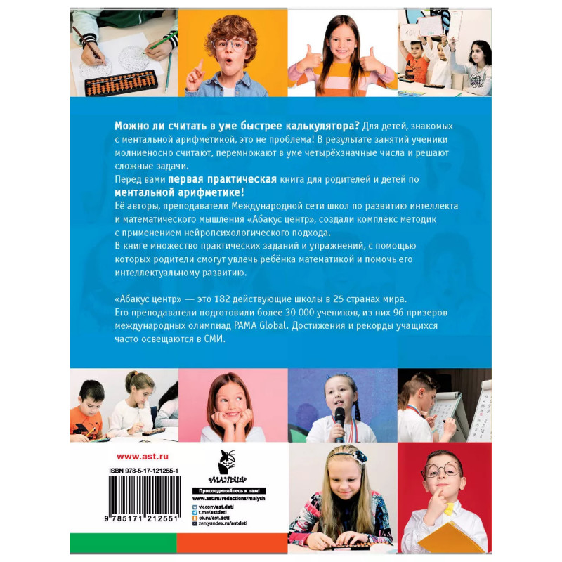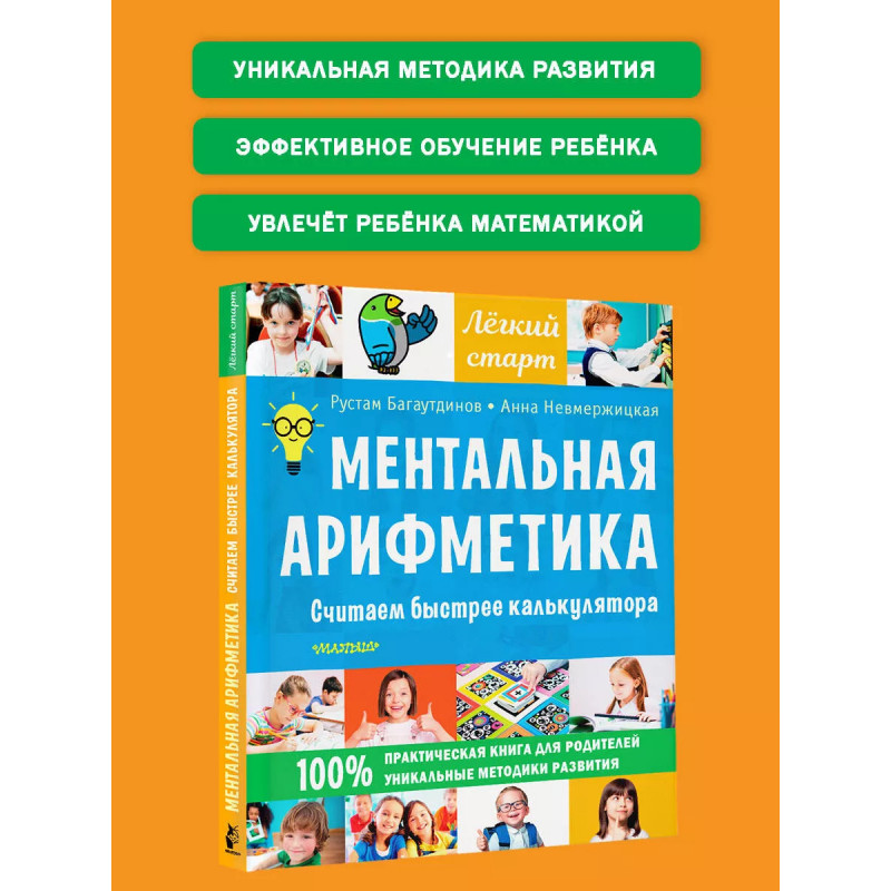 Ментальная арифметика. Считаем быстрее калькулятора. "Ментальная арифметика. Считаем быстрее калькулятора". Первая практическая книга для родителей и детей по ментальной арифметике. Ментальная арифметика - это целый комплекс методик интеллектуального развития ребёнка, с применением неиропсихологического подхода. В результате таких занятий ученики молниеносно считают, перемножают в уме четырёхзначные числа и решают сложные задачи. Книга предназначена для домашних занятий с детьми от 6 лет. Она поможет освоить основы ментальной арифметики, быстрый счёт на абаке, научит разбираться в задачах, готовиться к тестам и олимпиадам в начальной школе. В книгу включено множество практических заданий и упражнений, с помощью которых родители смогут увлечь ребёнка математикой. " Ментальная арифметика очень популярна, но родителям не всегда понятно, что она из себя представляет. Наша книга понятно и подробно объясняет ценность ментальной арифметики для развития детей. " Эта книга создана преподавателями Международной сети школ "Абакус центр" по развитию интеллекта и математич