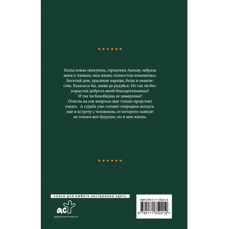 Когда новая опекунша, герцогиня Авенау, забрала меня в Амвьен, моя жизнь полностью изменилась. Богатый дом, красивые наряды, балы и знакомства. Казалось бы, живи да радуйся. Но так ли бескорыстна доброта моей благодетельницы? И так ли безобидны ее намерения? Ответы на эти вопросы мне только предстоит узнать. А судьба уже готовит очередное испытание и встречу с человеком, от которого зависит не только мое будущее, но и моя жизнь.