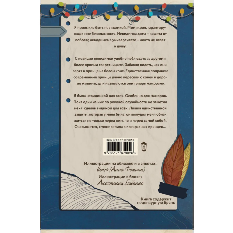 – Новинка в авторской серии «Сердце на ладони. Молодежные романы Таты Кит». – Тата Кит – популярная интернет-писательница, полюбившаяся читателям за легкий слог, тонкий психологизм, искрометный юмор и цепляющие сюжеты. – История о знакомстве с собой, когда жизнь переворачивается с ног на голову, о любовном треугольнике и отношениях обычной девушки с мажором. – Обложка и иллюстрации на оборотах от ttenri, черно-белые иллюстрации в блоке от Atanais. – Понравится фанатам книг Аси Лавринович и Анны Джейн.