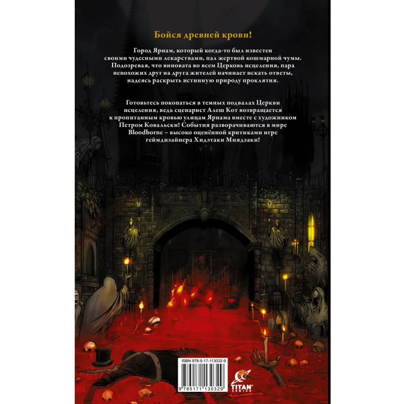 Город Ярнам, который когда-то был известен своими чудесными лекарствами, пал жертвой кошмарной чумы. Подозревая, что виновата во всем Церковь исцеления, пара непохожих друг на друга жителей начинает искать ответы, надеясь раскрыть истинную природу проклятия. Готовьтесь покопаться в темных подвалах Церкви исцеления, ведь сценарист Алеш Кот возвращается к пропитанным кровью улицам Ярнама вместе с художником Пётром Ковальски! События разворачиваются в мире Bloodborne высоко оценённой критиками игре геймдизайнера Хидэтаки Миядзаки!