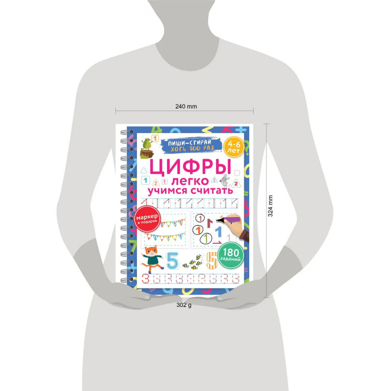 Характеристики Цифры. Легко учимся считать. Пиши–стирай. 4–6 лет.