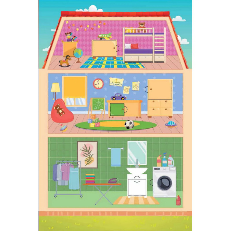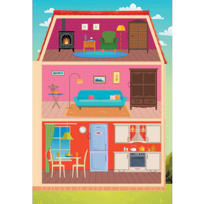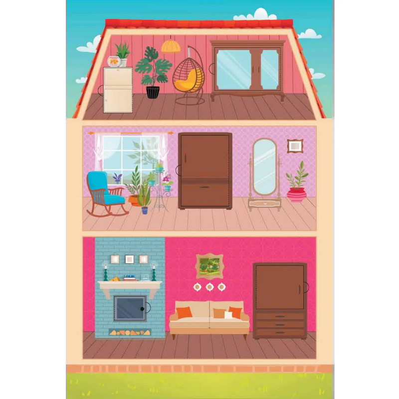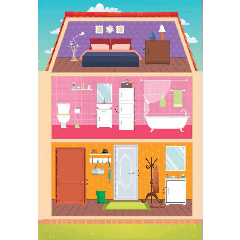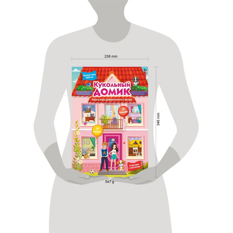 «Кукольный домик» — это необычная удивительная книга, с которой можно играть! Открываем книгу — и перед нами возникает макет дома длиной более 2-х метров. Малышам предстоит детально изучить множество разнообразных комнат, понять их назначение и узнать, как всё устроено в доме. Прихожая, гостиная, детская, столовая, спальня, ванная, кухня, игровая, каминная и другие — в нашем доме более 20 комнат! Маленькие хозяйки большого дома с любопытством откроют клапаны-окошки, внутри которых найдут много интересного и занимательного. Что хранится в шкафах? Где могут быть спрятаны трубы? Что находится в холодильнике? Как устроена духовка? Игры с окошками развивают мелкую моторику, внимание, мышление и логику. Книга содержит множество интересных деталей и ярких картинок. Она большого формата и сделана из плотного картона, поэтому прослужит долго. Отличный подарок, который порадует любого ребёнка!