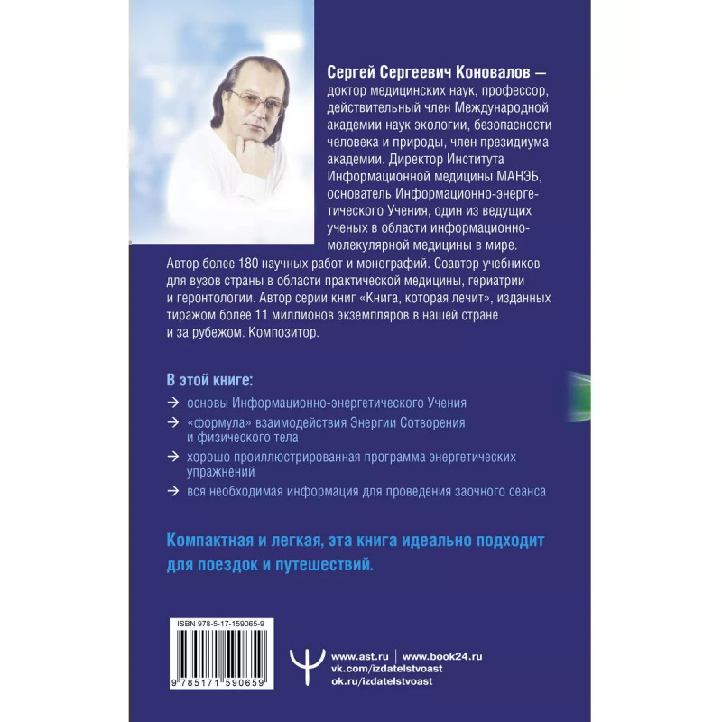 Энергетические упражнения семи лечебных дней. В книге профессора, Доктора Сергея Сергеевича Коновалова подробно описаны семь заочных сеансов, в основе которых лежит формула взаимодействия Информационных Полей Энергии Сотворения и Физического Мира. Книга содержит основы Информационно-энергетического Учения, изложенные в конспективной форме, и всю информацию, необходимую для проведения заочного лечения. В книге вы найдете подробную, хорошо проиллюстрированную программу энергетических упражнений для тех, кто не всегда имеет возможность взять с собой большой том Доктора Коновалова "Заочное лечение. Книга вторая". Книга особенно актуальна в связи с событиями последних лет - вирусной атакой на человечество. Программа семи лечебных дней позволяет начать восстановление всех систем организма в самое короткое время. Удобный формат, подробно изложенная программа энергетических упражнений, вся необходимая информация для проведения заочного сеанса - в компактном легком томе. Эта книга идеально подходит для поездок и путешествий. Суммарный тираж книг автора - более 11