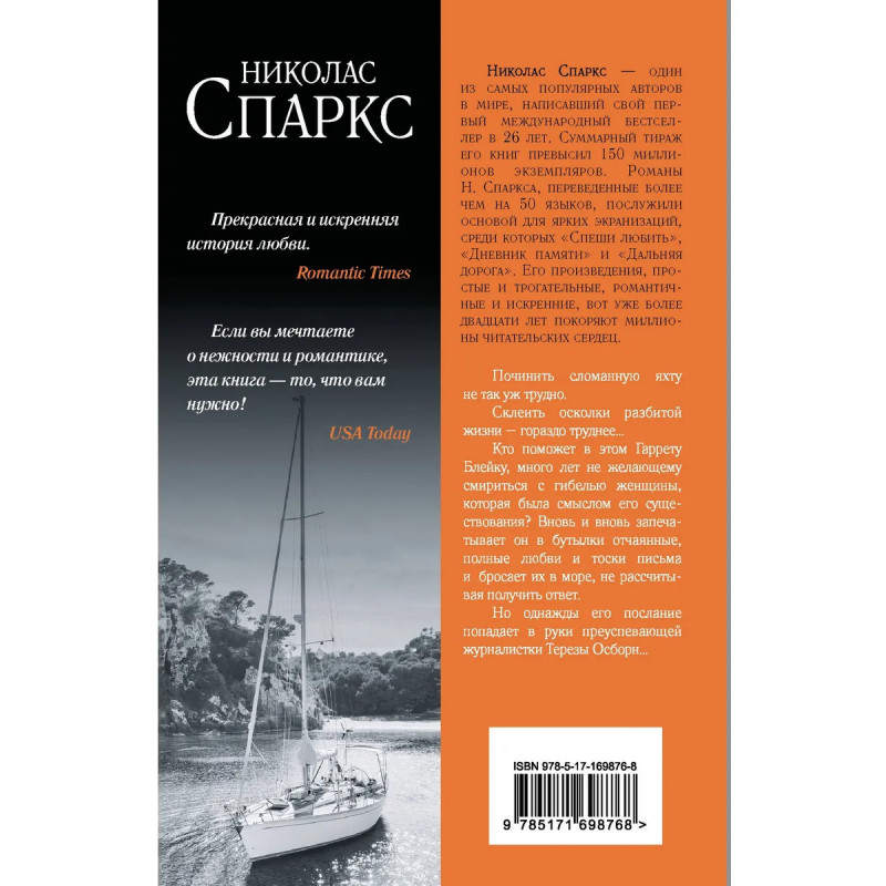 От автора бестселлеров Дневник памяти и Спеши любить. Послание в бутылке второй роман Николаса Спаркса. На его написание автора вдохновила история любви его родителей. В 1999 году роман лег в основу одноименного фильма с Кевином Костнером и Робин Райт в главных ролях. Послание в бутылке стало хитом при бюджете в 30 миллионов фильм заработал в мировом прокате 120 миллионов. Любимый роман теперь и в удобном карманном формате.
