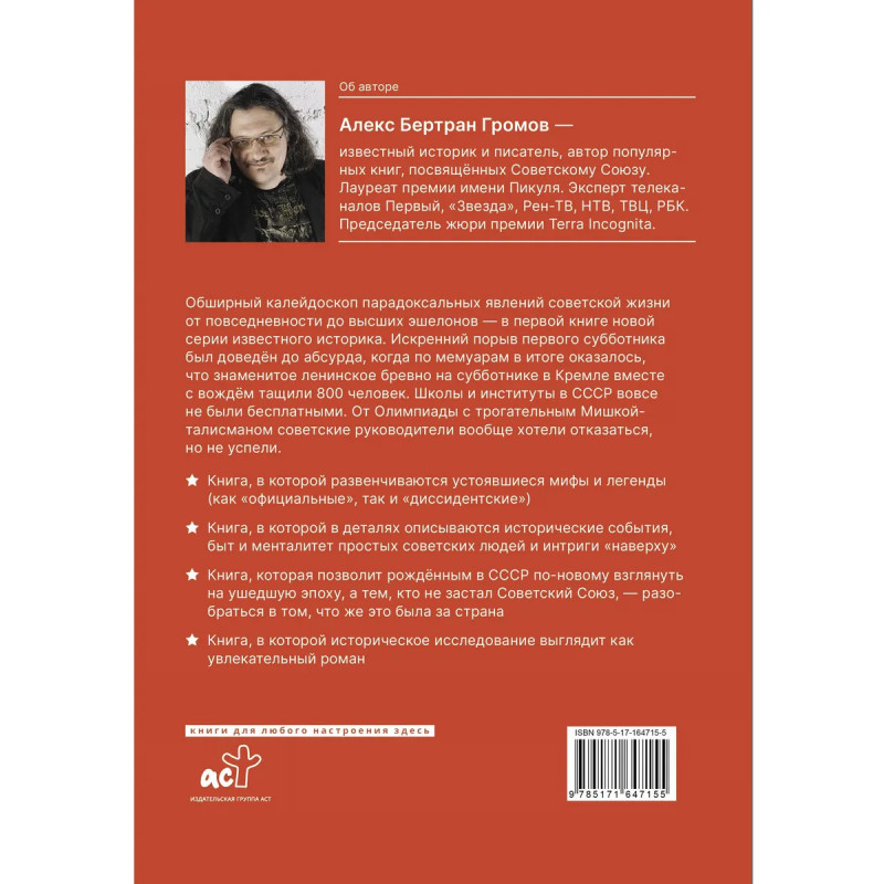Обширный калейдоскоп парадоксальных явлений советской жизни от повседневности до высших эшелонов в первой книге новой серии известного историка. Искренний порыв первого субботника был доведён до абсурда, когда по мемуарам в итоге оказалось, что знаменитое ленинское бревно на субботнике в Кремле вместе с вождём тащили 800 человек. Школы и институты в СССР вовсе не были бесплатными. От Олимпиады с трогательным Мишкой- талисманом советские руководители вообще хотели отказаться, но не успели. - Книга, в которой развенчиваются устоявшиеся мифы и легенды (как официальные, так и диссидентские) - Книга, в которой в деталях описываются исторические события, быт и менталитет простых советских людей и интриги наверху - Книга, которая позволит рождённым в СССР по-новому взглянуть на ушедшую эпоху, а тем, кто не застал Советский Союз, разо- браться в том, что же это была за страна - Книга, в которой историческое исследование выглядит как увлекательный роман.