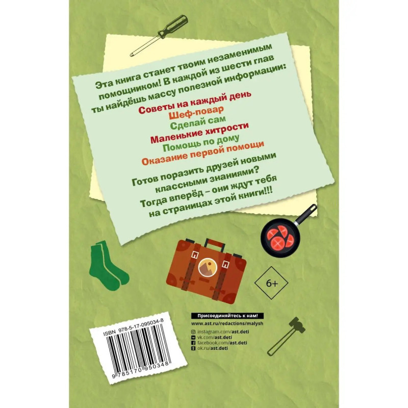 Эта книга полна надежных и проверенных советов и рекомендаций, которые помогут тебе справиться с большей частью повседневных дел. Это самое подробное руководство, без которого не сможет обойтись ни один парень, оно содержит советы о том, что делать в любых ситуациях: от починки проколотой шины до варки яйца. Для детей среднего школьного возраста