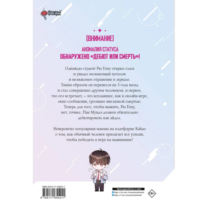Одна из популярнейших манхв на платформе Kakao! Рю Гону, 29-летний студент, учащийся на четвёртом курсе на государственного служащего, на следующий день после проваленного экзамена внезапно просыпается в незнакомом теле в отеле. Более того, он ещё и переместился во времени на три года назад, а настоящего Рю Гону в этом мире не существует. Теперь его зовут Пак Мундэ, и как в типичном романе с системой и перерождением, перед ним появляется окно статуса с заданием. Нет никаких ограничений для прокачки, но успеха достичь кажется невозможно, потому что всего за год нынешний Пак Мундэ должен либо дебютировать, либо умереть. Для широкого круга читателей.