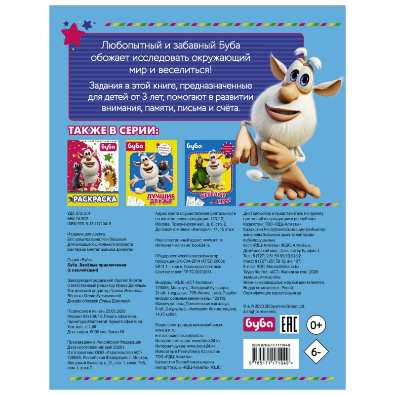 Любопытный и забавный Буба обожает исследовать окружающий мир и веселиться! Задания в этой книге, предназначенные для детей от 4 лет, помогают в развитии внимания, памяти, письма и счёта.