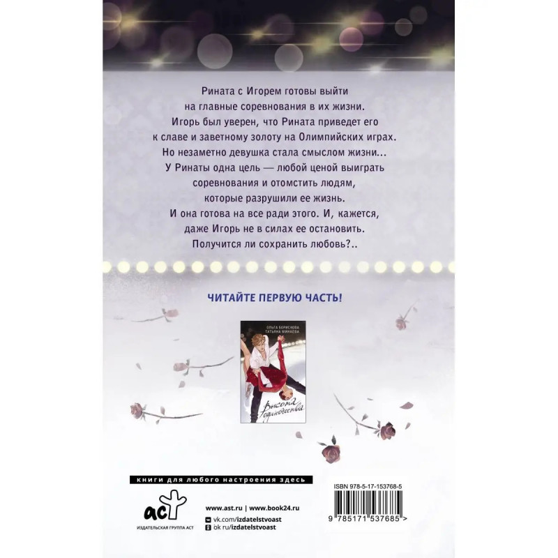Рината с Игорем готовы выйти на главные соревнования в их жизни. Игорь был уверен, что Рината приведет его к славе и заветному золоту на Олимпийских играх. Но незаметно девушка стала смыслом жизни У Ринаты одна цель любой ценой выиграть соревнования и отомстить людям,которые разрушили ее жизнь. И она готова на все ради этого. И, кажется, даже Игорь не в силах ее остановить. Получится ли сохранить любовь?..