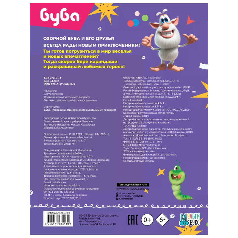 Озорной Буба и его друзья всегда рады новым приключениям! Ты готов погрузиться в мир веселья и новых впечатлений? Тогда скорее бери карандаши и раскрашивай любимых героев!