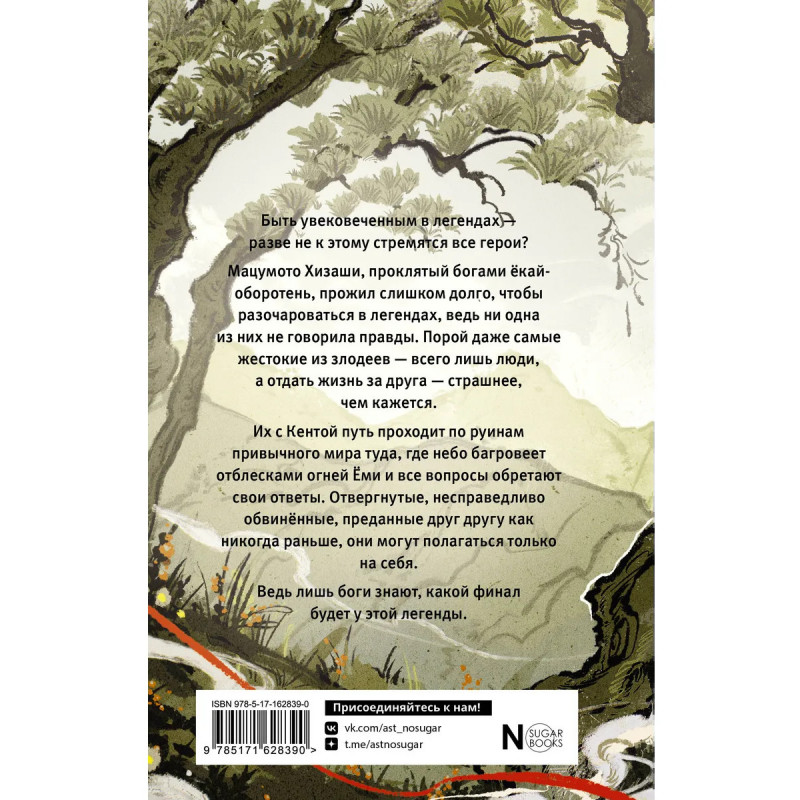 Быть увековеченным в легендах — разве не к этому стремятся все герои? Мацумото Хизаши, проклятый богами ёкай-оборотень, прожил слишком долго, чтобы разочароваться в легендах, ведь ни одна из них не говорила правды — порой даже самые жестокие из злодеев всего лишь люди, а отдать жизнь за друга — страшнее, чем кажется. Их с Кентой путь проходит по руинам привычного мира туда, где небо багровеет отблесками огней Ёми, и все вопросы обретают свои ответы. Отвергнутые, несправедливо обвиненные, преданные друг другу как никогда раньше, они могут полагаться только на себя. Ведь лишь боги знают, какой финал будет у этой легенды.